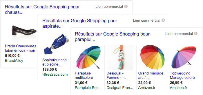 – Les campagnes Google Shopping présentent un format d’annonce qui contient
